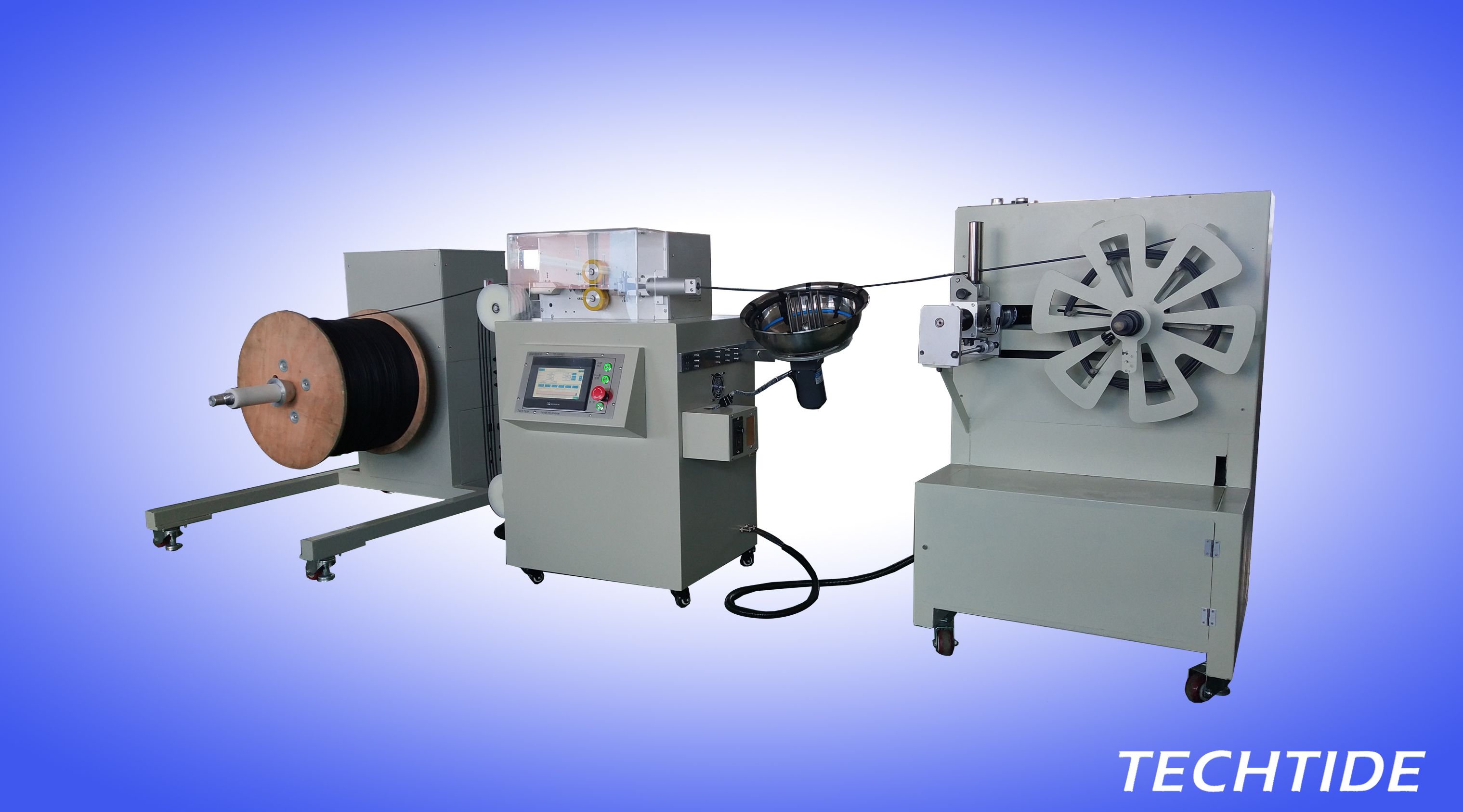: 自动完成从原料到成品的整个作业过程,包括长度计量,计数,光缆展开,切断及盘绕等。
